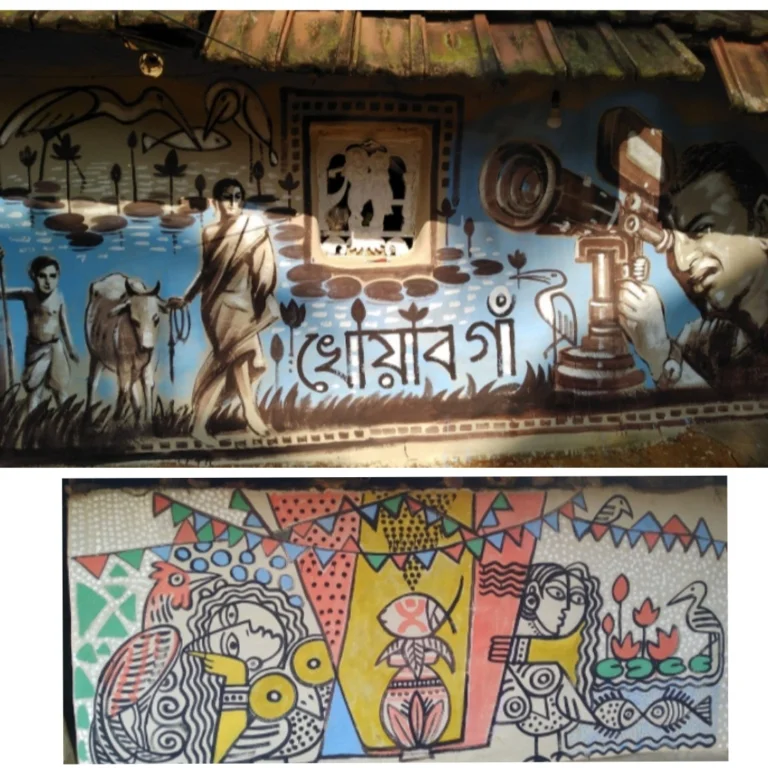 দিনমজুরির অবসরে ছবি আঁকেন আহির , গোবিন্দ, ভূপতিরা । জঙ্গলে পড়ে থাকা শুকনো গাছের শিকড় -বাকড় দিয়ে বানিয়ে ফেলেন শিল্পগুরু অবনীন্দ্রনাথ ঠাকুরের মত ছোট আকৃতির ‘কুটুম- কাটাম’ শিল্পকর্ম। তাঁদের সন্তানরাও মাটির বাড়ির দেওয়ালে আঁকে ফুল , লতাপাতা ও বিভিন্ন নকশা । যার ফলে গত তিন বছরে পশ্চিমবঙ্গের দক্ষিণ-পশ্চিম অঞ্চলে ঝাড়গ্রাম জেলায় শিল্পরসিক ও পর্যটকদের জন্য একটি নতুন ঠিকানা হয়েছে এবং সেটি হল হাতে আঁকা দেওয়াল -চিত্রে ভরা ‘একটি স্বপ্নের গ্রাম’ বা ‘খোয়াবগাঁ’। আর এই স্বপ্নের গ্রামের রুপকার হলেন শিল্পী মৃণাল মণ্ডল।